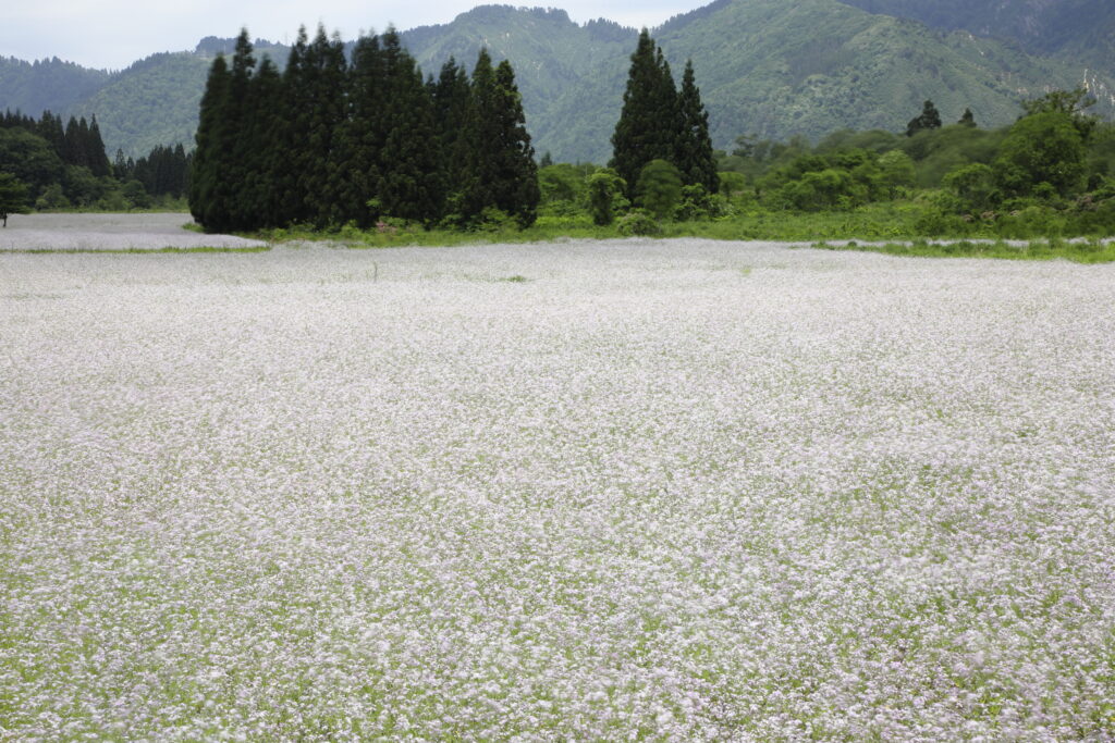 福島県奥会津金山町にある太郎布の大根畑、夏の初めに一斉に咲きだす白い花、NDフィルターを使用して花を流して撮影