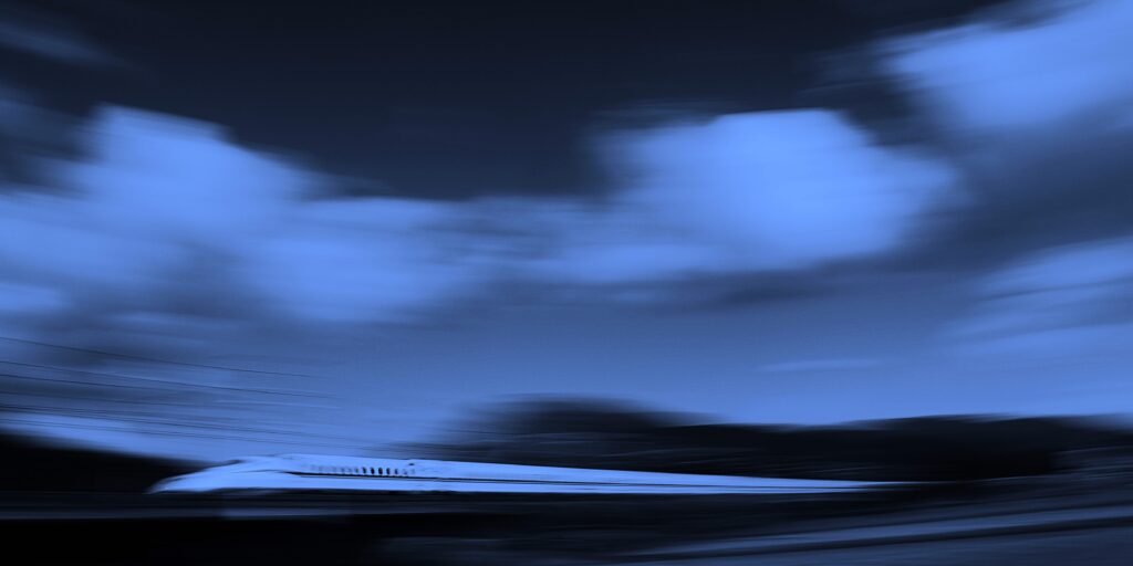 ドラマチックな雲の下を疾走する新幹線を流し撮りしました。