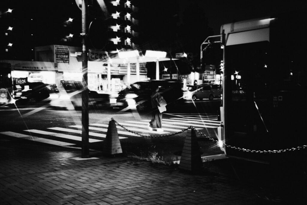 カメラを始めて間もないころ、保護目的以外で初めて購入したフィルターが「R-クロススクリーン」でした。あれから10年以上経ち、久しぶりに夜の街で使用してみました。人の動き、車の動きを予測し、「交差点をクロスフィルターで撮る」というダジャレのような絵作りにしました。