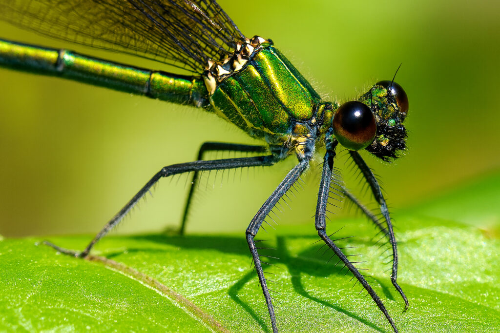 金属光沢のある美しいトンボです。肉眼では分かりにくいですが、写真に撮ると、その美しさは格別です。眼の輝きもなんとも言えません。クローズアップのたまものです。
