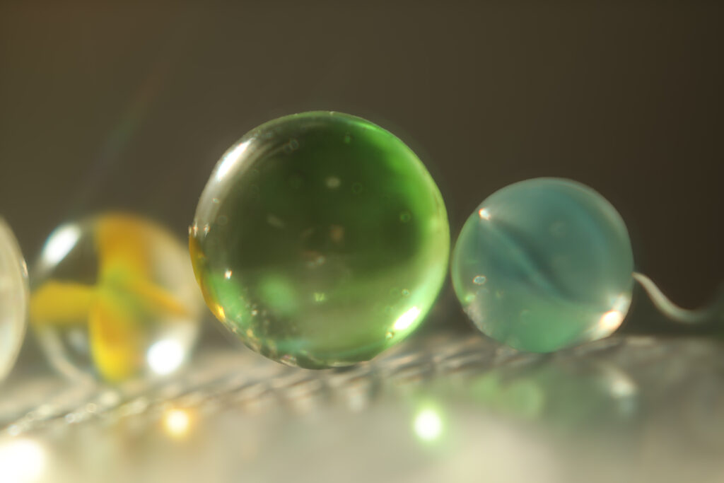 良い天気の日です。ビー玉のやわらかいキラキラ感じを出したくてブラックミストNo05を使いました。そしてビー玉の異質感を出すためにマクロレンズを。