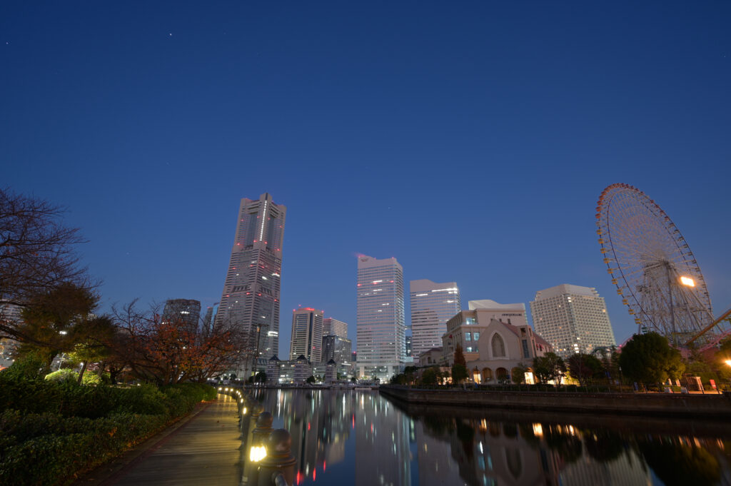 天候は晴れの早朝に撮影しました。冬の寒さを表現して、色かぶりの少ない本来の色を再現する為、光害カットフィルターを使用しました。また、この日は、風が少し吹いていたので、水面を穏やかにする為、20秒のシャッタースピードで撮影しました。この写真は、レタッチ無しで色の再現性に満足しています。撮影場所 横浜市みなとみらい
