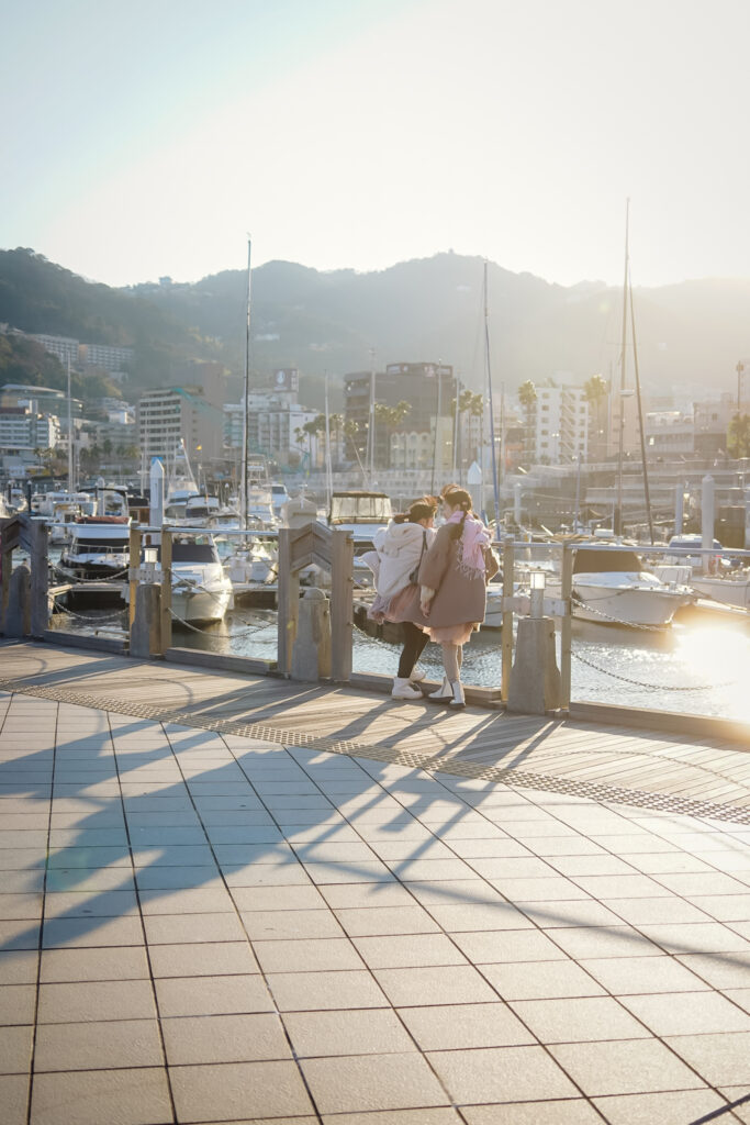 滲むような夕陽の光と伸びる影がとても綺麗で、ここでシャッターを切りました。