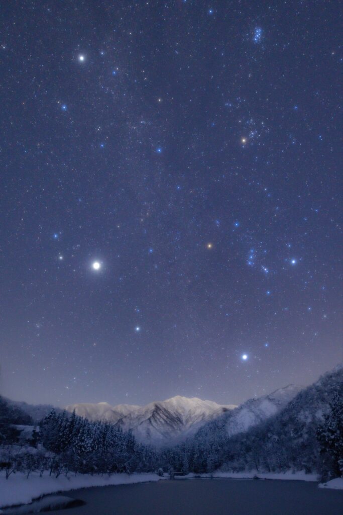 - この写真は、雪が積もり始めた1月初旬、珍しく澄み切った晴天の夜に撮影しました。