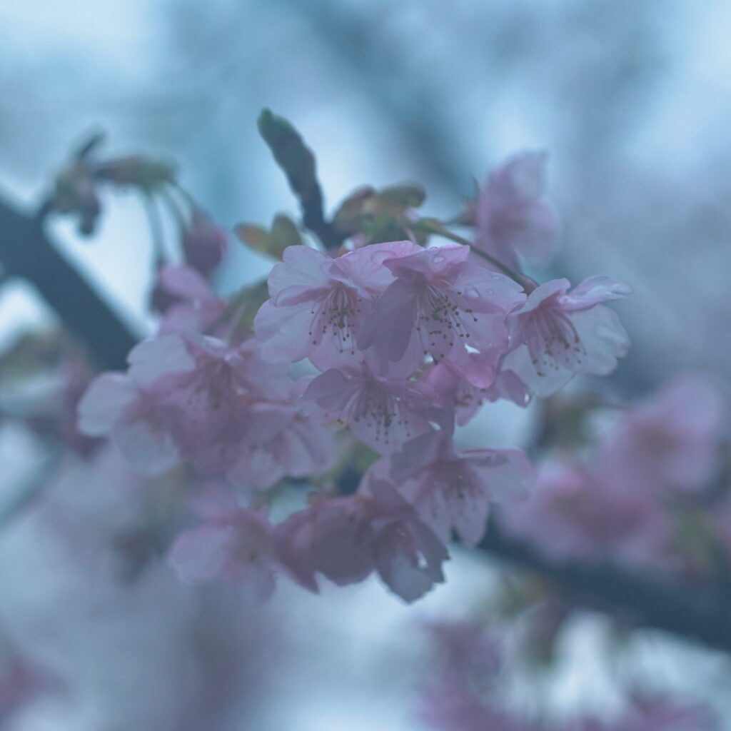 まだ冷たく澄んだ空気の中に咲く河津桜を切り取りました。
