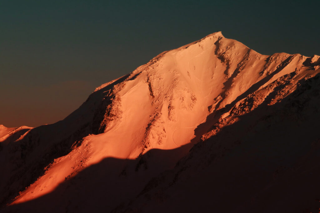 夕日に染まる大山剣が峰をハーフトワイライトフィルターを使って強調してみました。