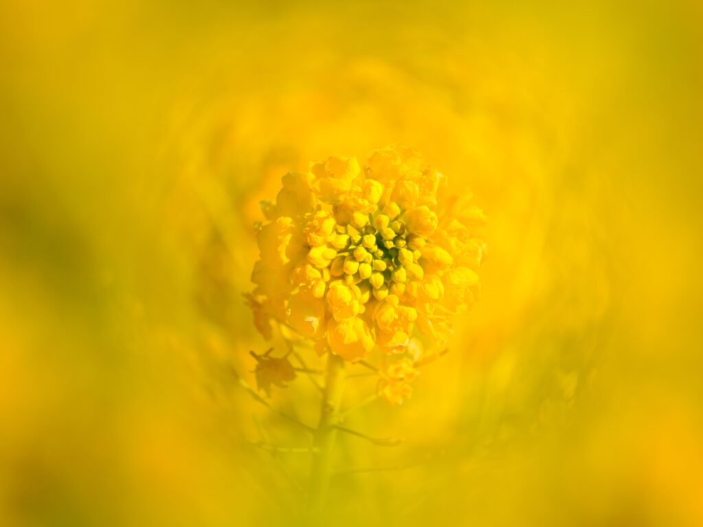 神奈川県平塚市にある神奈川県立花奈ガーデンで撮影しました。Instagramで見たレンボーハロフィルターで撮影した写真を見て、このフィルターを購入しました。春を感じさせる花として菜の花を選び、ズームレンズの望遠側で撮影することで、中心の黄色とその周りの黄色から中心の菜の花を際立させました。幸せの色として黄色を選ぶことで春を感じてもらえればと思います。