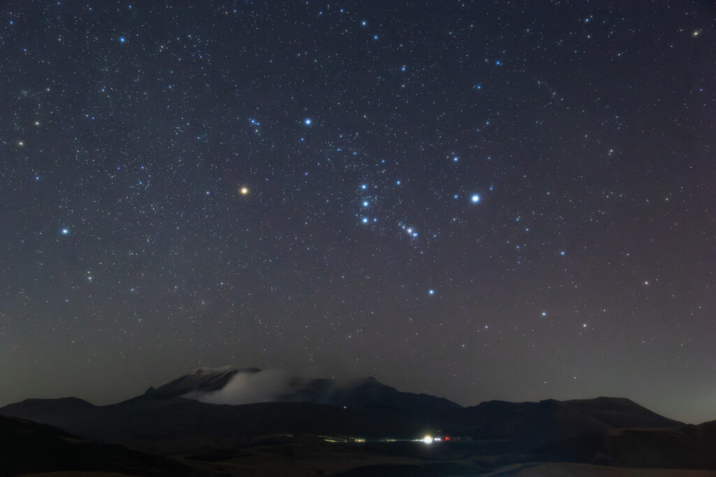 阿蘇山に昇るオリオン座