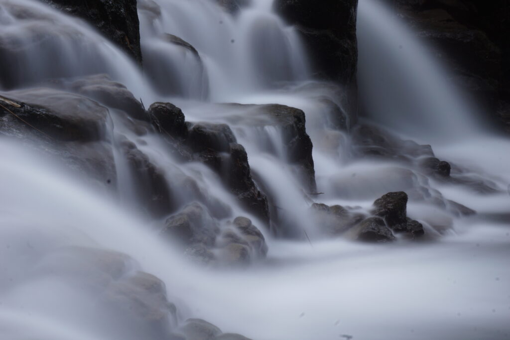 滝壺に着き、カメラを設定してピント、角度、「長時間露光30秒」に設定して