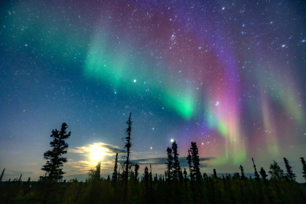 - 月光に染まるオーロラ