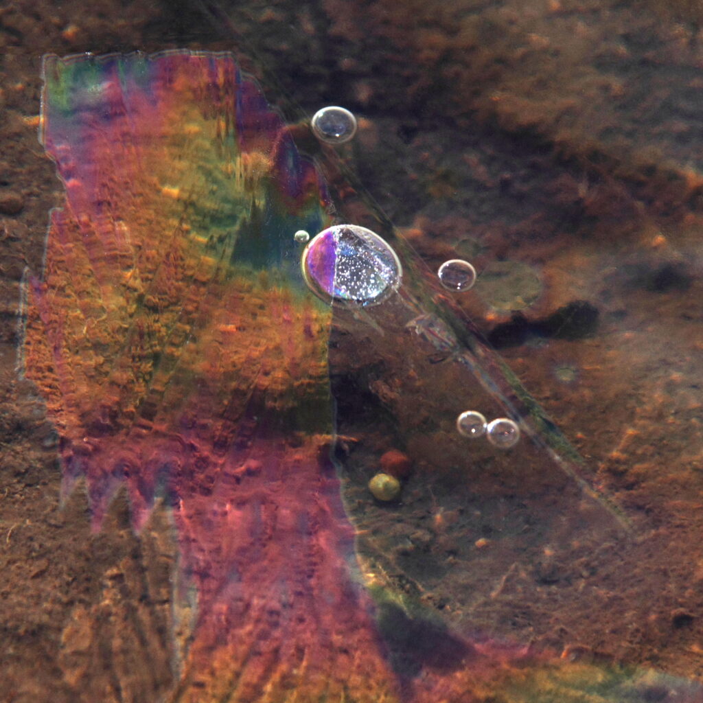 斜光線を受けた薄氷を色んな角度からCPLフィルターを操作して覗いてみると