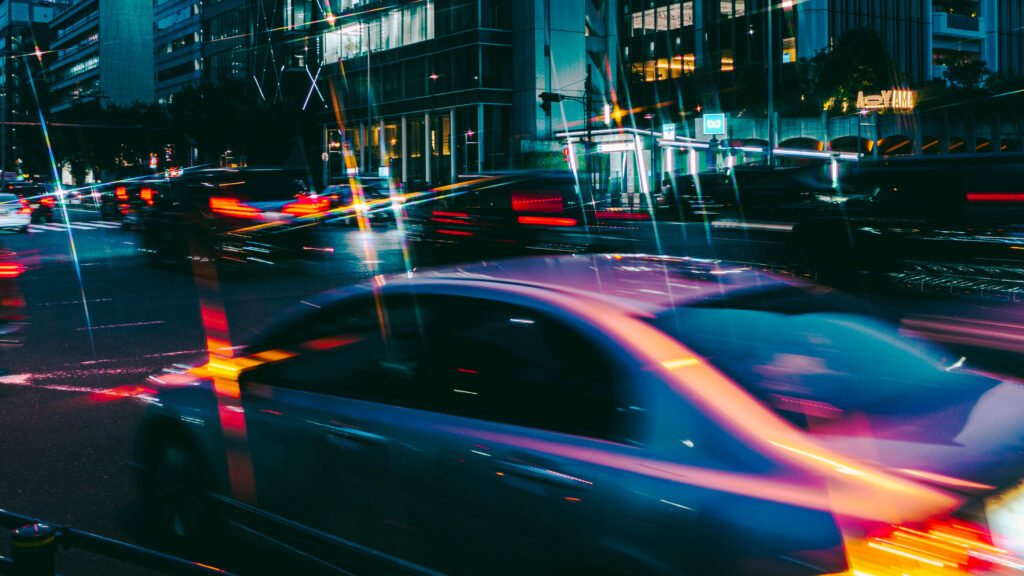 - 東京都港区青山一丁目交差点。いつも持ち歩いているカメラ片手に、会社帰りに一駅分歩いた先にある交差点は、流し撮りの練習によく訪れる場所。趣向を変えて疾走する車の激しい動きをスローシャッターで捉えた景色切りとり作品に仕上げました。クロスフィルターは夜の街を撮影する時、常時つけており、夜の明かりをより眩く映し出す美しさが好きで使ってます。この交差点では、街灯が黄色い灯りのため、さまざまな灯りと混ざり、車に反射する灯りは思いもよらない形となって映し出され、インパクトを与えた。