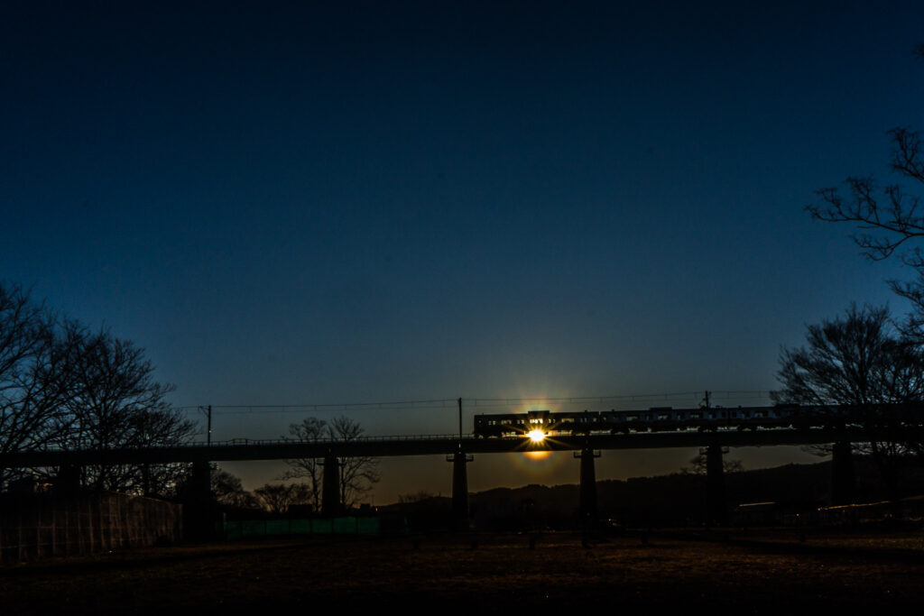 加治鉄橋を渡る八高線の一番列車