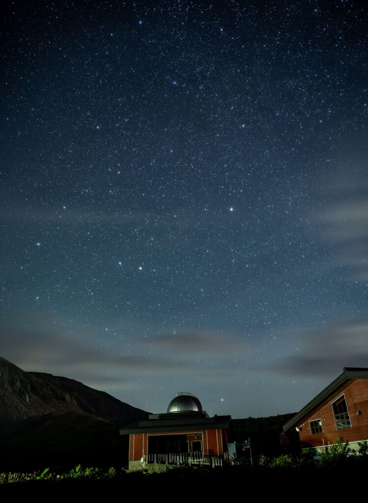 - 福島県にある浄土平で撮影した星空写真です。晴れており、撮影場所がわかるような構図を探し、天文台を中央に入れて星空を撮影しました。建物が見えるように設定を考えていたところ、車のライトがタイミング良く建物を照らし、その瞬間を収めました。でも照らされたライトで建物が明るくなりすぎないように調整。また星空もSTARRYNIGHT PROSOFTONを使用したことで星の輝きが増し、街明かりなどの光源も軽減してくれました。星空は自分のイメージに沿って青い感じで宇宙を実感するようなレタッチで仕上げています。